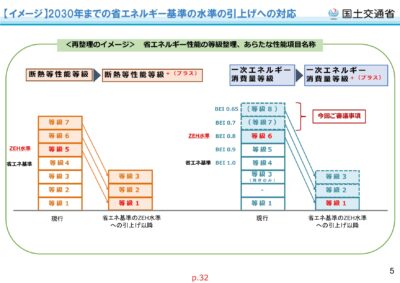 これまでの最高等級である、一次エネルギー消費量等級6は、BEI≦0.8、つまり基準に対しておおむね20%以上一次エネルギーを減らした住宅が対象です。