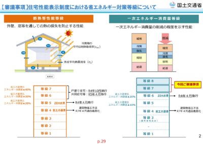 ZEH水準を上回る水準の省エネルギー性能を有する住宅の普及を促進する旨が位置付けられ、2050年カーボンニュートラルの実現に向けて、より省エネ性能の高い住宅の普及や、その水準を評価できる環境整備が進んでいます。
