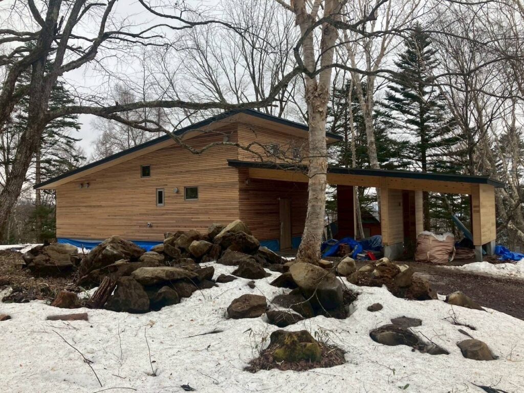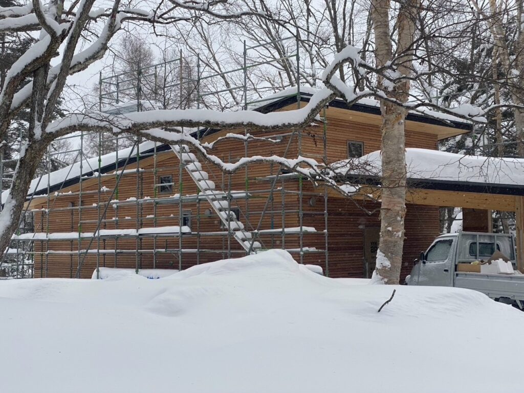 足場のない外観は、自然の中にとてもなじんでいるように感じます。