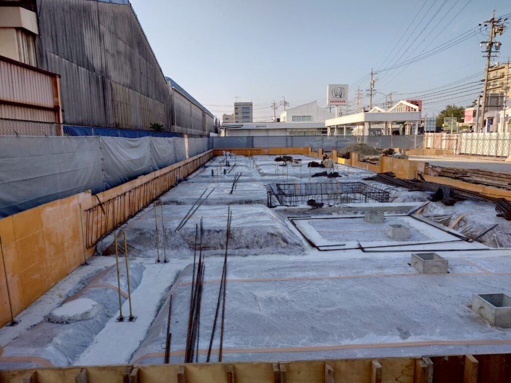 元々、店舗がありましたが解体を終え、基礎工事を行っています。