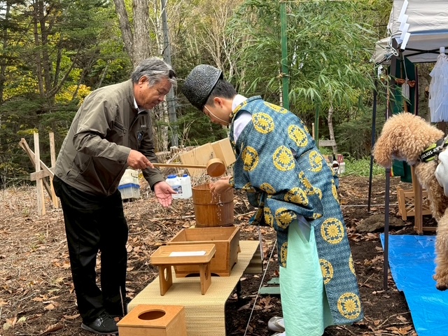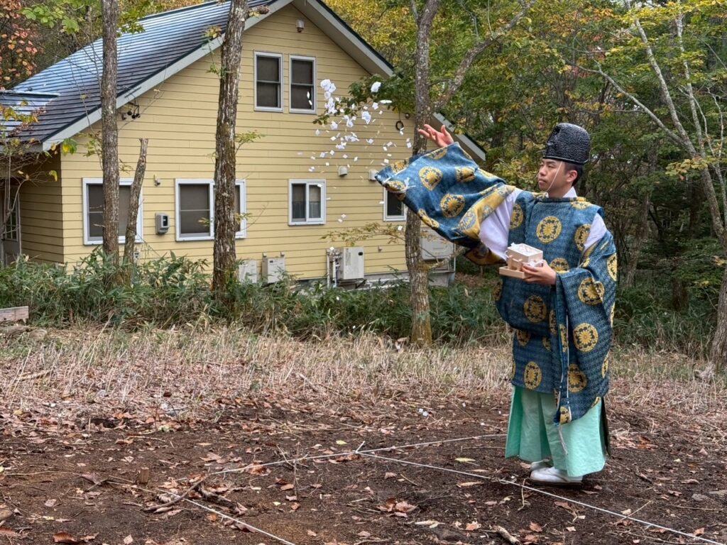 蓼科ではいつも、諏訪大社の宮司様に祭事をお願いしています。